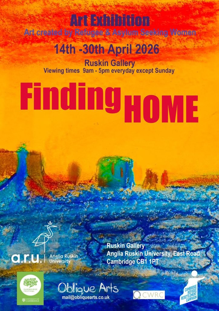Following a short display during the Cambridge Festival, this is a final opportunity to see Finding Home, an exhibition showcasing art created with refugee and asylum seeking women and children in Cambridge.